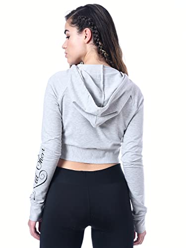 Red Cheri Felpa con Cappuccio Donna Ariosa Manica Lunga Lunghezza Corta Scollo a V -Grande Grigio Chiaro