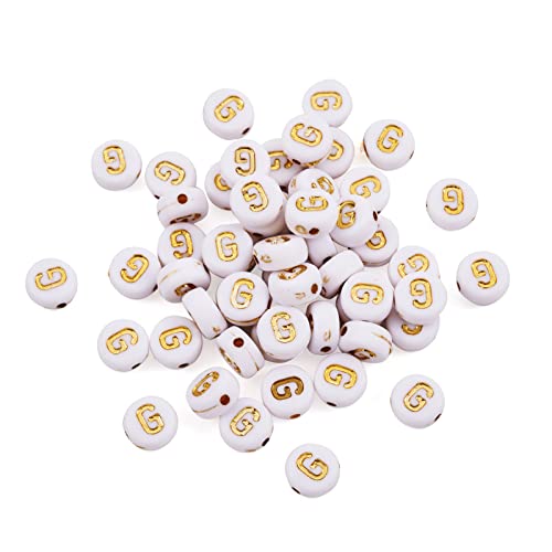 Cheriswelry 360pcs 7mm Piatto Rotondo Acrilico Lettera G Allentato Perline Distanziatore Charms Oro Bianco per Gioielli Braccialetto Fare