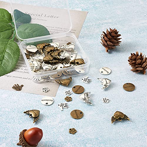 Contenuto della confezione: 8 etichette piatte rotonde, a forma di cuore con ali, a forma di mano e fiore, ogni forma ha colori argento antico e bronzo antico, 10 pezzi/stili, 80 pezzi/scatola.