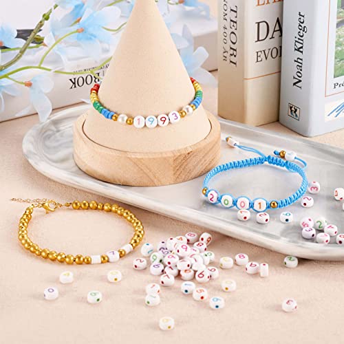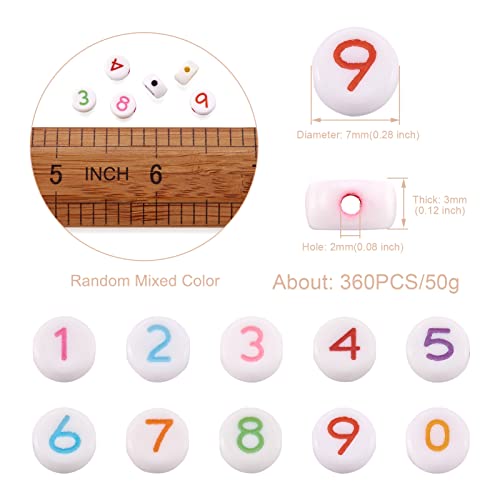 Cheriswelry 360 perline rotonde piatte in acrilico, con numeri da 0 a 9, 7 mm, colore bianco, a disco, per anniversari, messaggi, bracciali, collane e gioielli