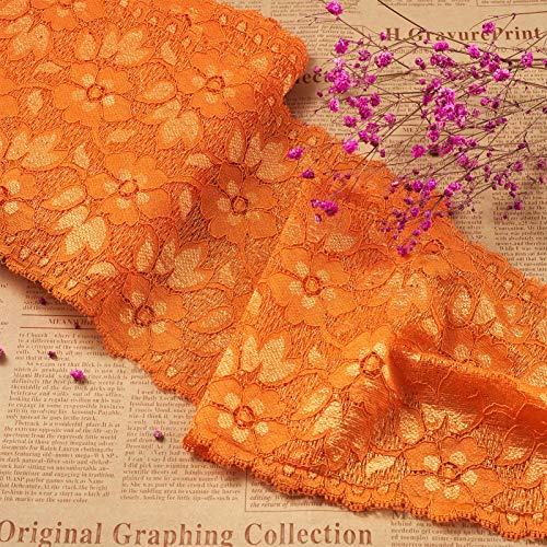Cheriswely, nastro di pizzo da 9,1 m, larghezza 9,1 cm, bordo in pizzo floreale, rotolo elastico elastico per cucito, per realizzare fiocchi per capelli, confezione regalo (arancione)