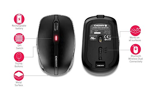 CHERRY MW 8 ADVANCED, Mouse Senza Fili, Connessione Bluetooth o Wireless 2,4 GHz, Sensore ad alta precisione con Risoluzione Regolabile su 4 Livelli, Ricaricabile, Nero