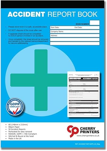 Cherry GDPR - Blocco per segnalazioni sugli incidenti, formato A5, 50 pagine