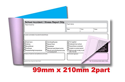 Cherry Printers Carbonless NCR - Libro per incidenti scolastici, 99 x 210 mm, 50 pezzi, duplicato/triplicato