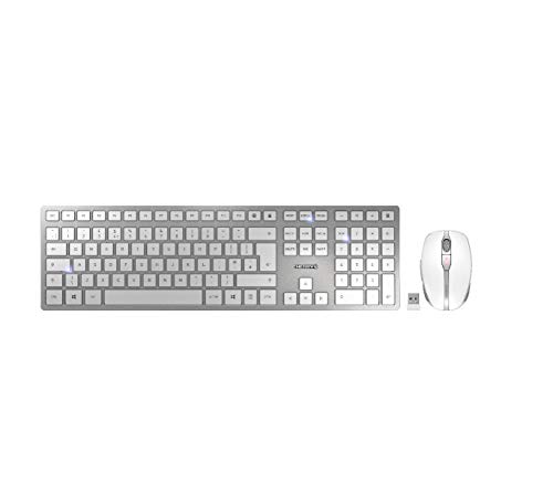 Cherry DW 9000 SLIM tastiera RF Wireless + Bluetooth AZERTY Francese Argento, Bianco