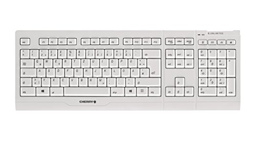 Cherry B.UNLIMITED 3.0, set tastiera e mouse wireless, layout tedesco, tastiera QWERTZ, batterie ricaricabili, scritta tasti resistente all'abrasione, Blue Angel, bianco-grigio