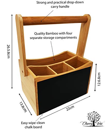 CherryTreeHouse - Porta posate con 4 scomparti per posate e condimenti, con manico e lavagnetta, perfetto per casa, ristorante, barbecue, idea regalo