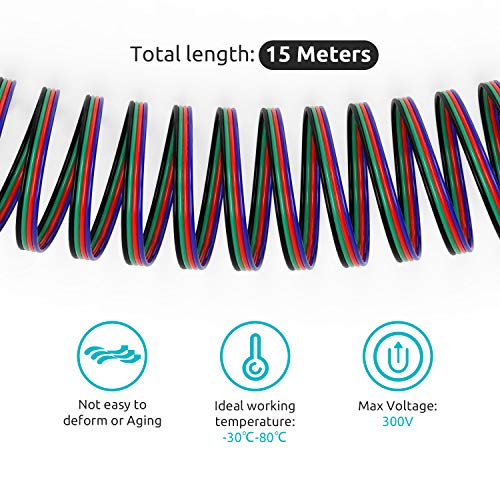 Chesbung Cavo di prolunga a LED, 15 m, RGB da 49,2 m, cavo di collegamento a 4 poli, con spina a L, spina a 4 poli