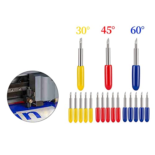 3 Tipi di angolazione: le lame a 30° sono utilizzate principalmente per il taglio di vetri molto sottili e materiali in mylar. Le lame a 45 ° sono la lama standard fornita con la maggior parte delle taglierine per vinile. Sono consigliati per tutti i vinili cast standard, calandrati e altri materiali sottili come ThermoFlex Plus. Le lame a 60° sono consigliate per materiali più spessi come pellicole riflettenti, materiali floccati e twill e anche resistenti alla sabbiatura.