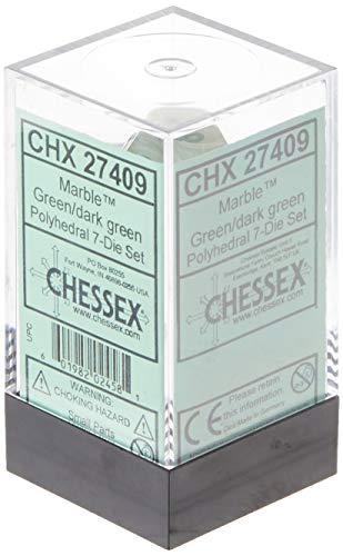 Chessex Dice: CHX27409 Set Dadi Marble: Green/Dark Green (7)