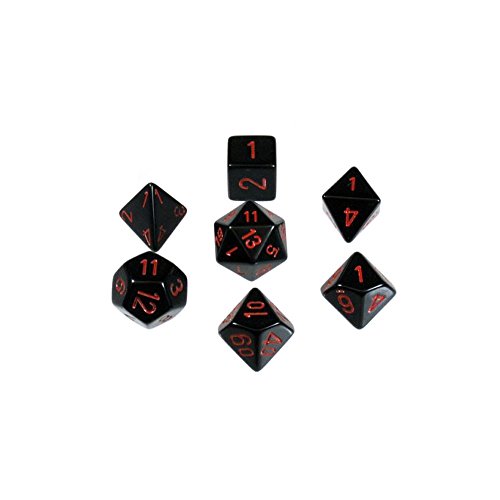 Chessex Dice: Polyhedral 7-Die Opaque Dice Set - Black with Red