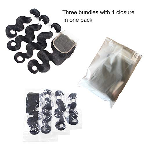 New Cheuveux Human Hair Extension - Orange Star Peruvian 3 bundles capelli umani closure frontal human hair bundles colour 1b bundles and closure human hair(25, 30, 35 + 25 cm)