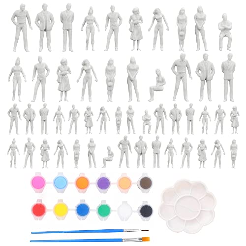 CHEVVY 100 Pezzi di Modelli di Personaggi in Plastica a Scala 1:50 e 1:75 Miniature di Persone Non Verniciate Bianche con Pitture e Pennelli per Scene in Miniatura
