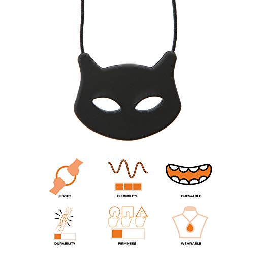 Chewigem - Collana DualTextured, discreta, masticabile e aiuto Stimming (masticatori delicati). Aiuto calmante per difficoltà di elaborazione sensoriale - Autismo - ADHD. Riduzione dell'ansia e messa a fuoco migliorata. Ciondolo gatto in nero. Perfetto per bambini e adulti con esigenze motorie orali o dentizione.