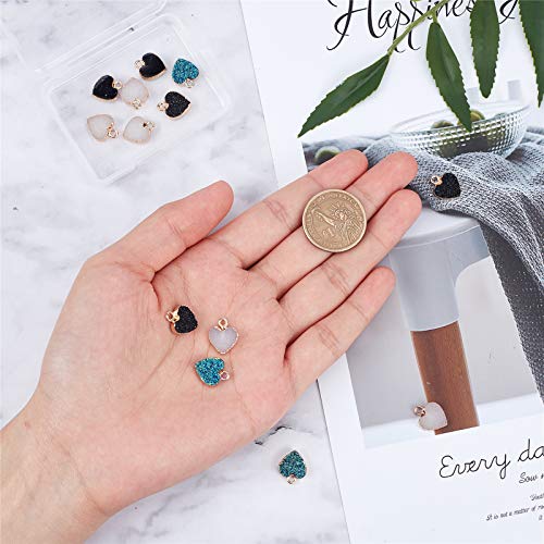 CHGCRAFT 15pcs Ciondoli In Resina Druzy Colore Misto Ciondoli A Forma di Cuore Con Anello In Ferro Placcato Oro Chiaro per Creazione di Gioielli, Hole 1 mm