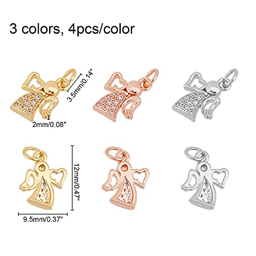 CHGCRAFT 12Pz 3Colors Angelo Charm Ottone Micro Pave Cubic Zirconia Angelo Pendente Charms Pendenti Angelo Pendente Collana Charms per Orecchini Bracciale DIY Making, 0.4x0.5 pollici