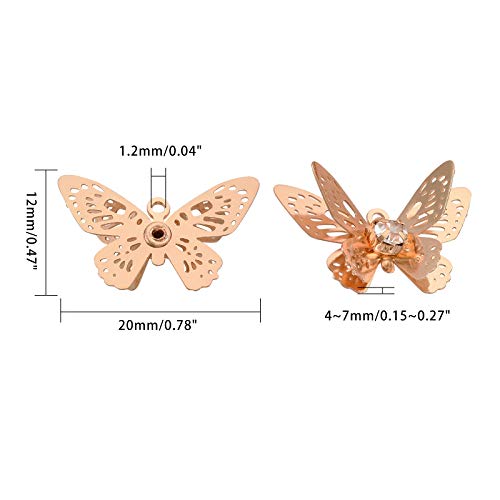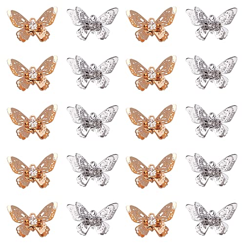 CHGCRAFT 20Pz 2 Colori Filigrana Farfalla Charms Pendenti Con Gemme E Perle di Cristallo Strass Ottone 3D Farfalla Perline Charms per Braccialetto FAI DA TE Collana Risultati Dei Monili