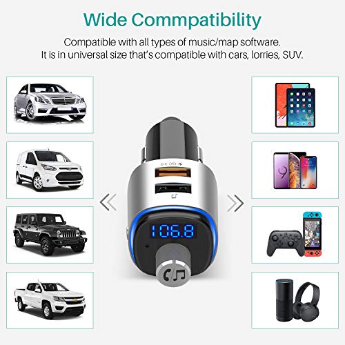 Chiamate in vivavoce di alta qualità: questo trasmettitore FM Bluetooth per auto è dotato di microfono integrato, che offre chiamate chiare dopo la connessione Bluetooth. Rispondi/ricomposizione/cancellazione o terminare la chiamata, basta fare clic su un pulsante. Passa facilmente dalle chiamate in arrivo alla musica. Inoltre, supporta la navigazione vocale del telefono.
