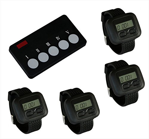 Set per chiamate senza fili per cucina / cuoco: 1 x trasmettitore a cinque pulsanti APE 350 per la cucina e 4 x ricevitori da polso APE 6600