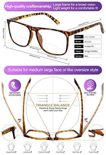 OCCI CHIARI Bifocale Blu Luce Bloccante Occhiali da Lettura per gli Uomini Occhiali Da Sole Oversize Lettori Occhiali Da Sole Primavera Cerniera 1 1.5 2 2.5 3 3.5, Tartaruga gialla(bifocale), XL