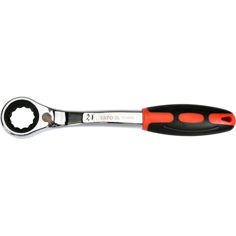 SPECIFICHE: Marchio: Yato Simbolo: YT-02385 Serie: GRD Materiale: Acciaio al carbonio n. 45, CrV 50BV30 Applicazione: Servizi automobilistici, officina Finitura superficiale: cromata, lucidata Materiale impugnatura: TPRT Durezza: 42-48 HRC Numero di denti: 72 Dimensioni: 24 mm Superficie della testa: lucidata Lunghezza totale: 265 mmTipo di chiave ad anello: dodici puntiLarghezza della chiave ad anello: 47 mmSpessore della chiave ad anello: 15 mmCricchetto: sìInterruttore per il senso di rotazione: sìChiave ad anello a cricchetto YATO YT-02385. Una chiave con profilo curvo per allentare le viti. Consigliato per servizi automobilistici. • Realizzato in durevole acciaio CV, resistente ai danni meccanici • Durezza: 42-48 HRC • 72 denti • Interruttore di rotazione destra/sinistra • L'impugnatura ergonomica in plastica gommata garantisce una presa stabile.**