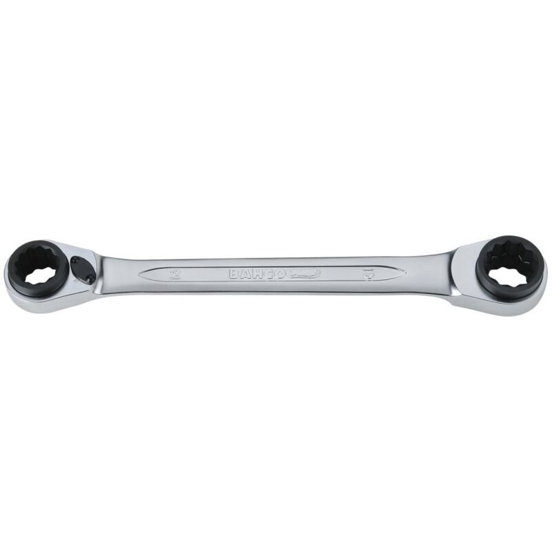 Tasto Bahco Four-Cracking di quattro volte 21.22.24 e 27 mm, lunghezza 275 mm manico a sinistra e legale sulla leva di commutazione a 5 ° angolo girevole posteriore placcato nichel e crommi Matt, profilo delicata dinamico per una durata più lunga di viti e dadi