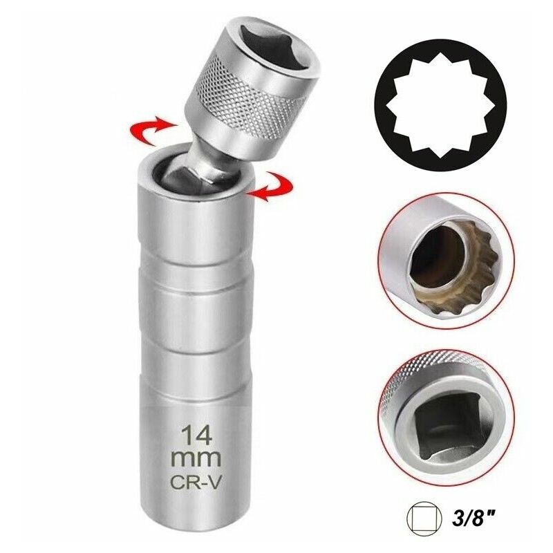 CHIAVE A BUSSOLA PER CANDELE CON SNODO DA 14 mm CON ATTACCO DA 3/8.CHIAVE A BUSSOLA CON SNODO PER CANDELE DI MISURA 14 mm.REALIZZATA INTERAMENTE IN ACCIAIOCROME VANADIUM CON FINITURA SATINA.INDISPENSABILE PER SMONTARE E RIMONTARE LE CANDELE SITUATE IN ALLOGGIAMENTIDIFFICILMENTE ACCESSIBILI.DOTATA DI PROFILO INTERNO POLIGONALE PER UNA MAGGIORE PRESA ANCHE SU DADI ROVINATI.DOTATE DI PARTE SUPERIORE SNODABILE A 360° PER AGEVOLARE LE OPERAZIONI DI SOSTITUZIONE.MISURE:DIAMETRO INTERNO BUSSOLA 14 mmDIAMETRO ESTERNO 18 mmLUNGHEZZA 97 mm.ATTACCO DA 3/8.