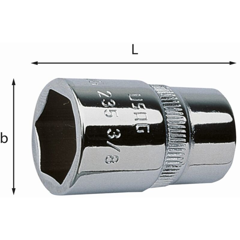 CHIAVE BUSSOLA ES 3/8 16,0 h 30 235E USAG Bussola esagonale Attacco 3/8 F Fullcontact Acciaio Cromo Molibdeno Esecuzione cromata