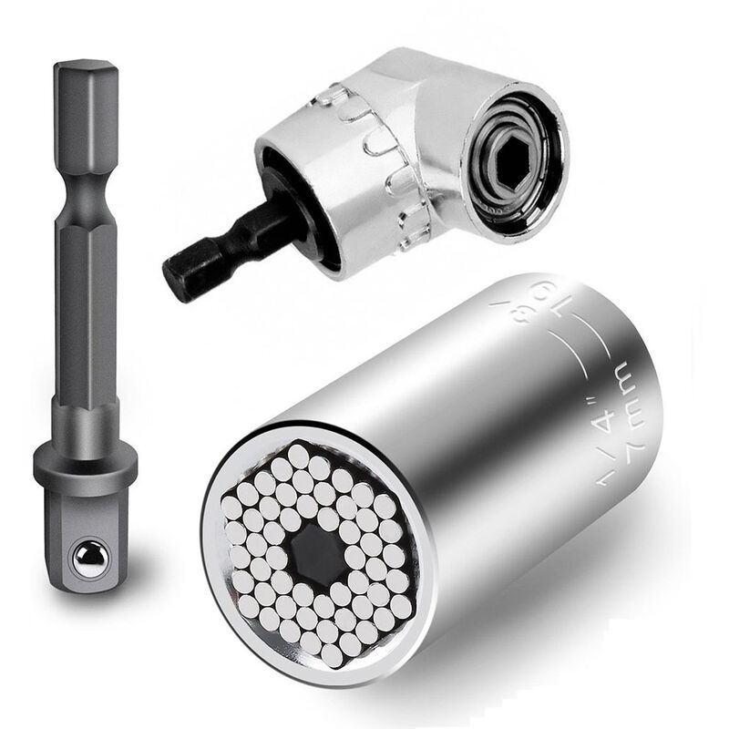 Peso: 0,25 kg Dimensioni: 13 * 11 * 3 cm Colore: come mostrato nell'immagine Buon design: lo zoccolo include 54 singoli perni elastici in acciaio temprato, forgiati con un eccellente trattamento termico e mantiene le punte delle viti serrate e senza giunture, assicurandosi che non lo facciano scivolare. La chiave a bussola universale è la più robusta in assoluto con il design a nido d'ape. Puoi scegliere la dimensione della vite/dado in base all'utilizzo dello spazio, risparmiando tempo. Impugnatura universale da 7 mm a 19 mm. Adatto per dadi e bulloni standard da 1/4 a 3/4 di pollice e metrici da 7 a 19 mm. Il design autoregolante facilita la presa del dado esagonale, dell'occhiello della vite, del gancio, del tenditore e della testa della vite. Viti smontabili, gancio girevole. Smontaggio vite, vite smontaggio irregolare. Rimuovi il rubinetto rotto e stringi la manopola. Angolo di angolo di 105°: con punte esagonali standard da 6,35 mm (1/4), può essere collegato a trapani