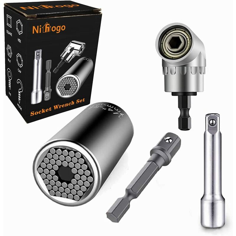 Kit universale - 1 chiave a tubo, 2 diversi tipi di collegamenti, cacciavite con prolunga ad angolo retto da 105 gradi. Un set di strumenti per soddisfare le diverse esigenze. 【Acciaio al cromo vanadio】 La chiave a bussola è realizzata in acciaio al cromo vanadio di alta qualità ed è composta da 54 piccole barre d'acciaio. Ha buone proprietà di trattamento termico, elevata durezza, coppia elevata, buona tenacità e lunga vita. 【Efficiente】 Questo elegante set di chiavi a bussola funziona rapidamente e facilmente ed è una cassetta degli attrezzi per quasi tutti gli errori. Sostituire le chiavi a bussola metriche e standard. 【Multi-angolo】 La chiave angolare da 105° è uno strumento ideale per le aree difficili da raggiungere. Regolazione parallela a 360°. Può essere collegato a trapani manuali e chiavi manuali. 【Una vasta gamma di applicazioni】Adatto per l'industria automobilistica, la riparazione della casa, la produzione, l'edilizia e altri settori, ma anche per la decorazione d'interni.