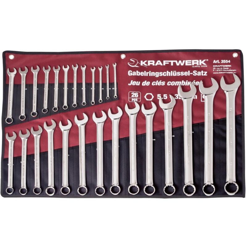 KRAFTWERK 3554R Set chiave del carrello elevatore 5,5 - 32 mm 26 pezzi in sacchetto a rulli Larghezza chiave: 55 - 6 - 7 - 8 - 9 - 10 - 11 - 12 - 13 - 14 - 15 - 16 - 12 - 13 - 14 - 15 - 16 - 17 - 18 - 19 - 20 - 20 - 21 - 22 - 23 - 24 - 25 - 26 - 27 - 28 - 30 - 32