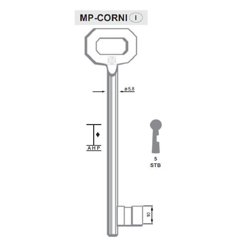 Chiave cifrata per serratura applicare cantina leggera corni 5STB