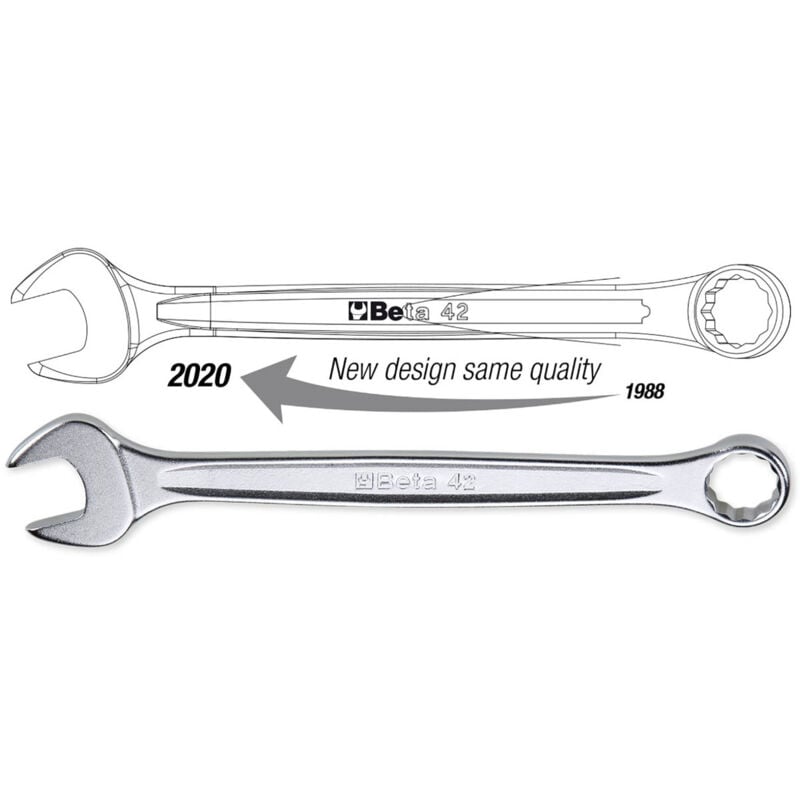 BETA Chiave Combinata 42N 21 x 21 mm 000421021 La chiave 42NEW è l'evoluzione della storica chiave 42 Beta. Il design è stato rivisto per rendere la chiave ancora più snella e maneggevole, adatta per intervenire in qualsiasi spazio. La nuova chiave è perfettamente compatibile con tutti i contenitori e i moduli termoformati della storica chiave 42 Beta. DIN 3113 UNI-ISO 7738 Forchetta inclinata di 15° per ridurre l'angolo di ripresa. Poligono inclinato di 15° rispetto all'asse per facilitare la presa della chiave quando lo spazio di manovra è limitato. Spessori della forchetta ridotti al minimo per intervenire facilmente anche in spazi ristretti. Realizzata in acciaio legato.