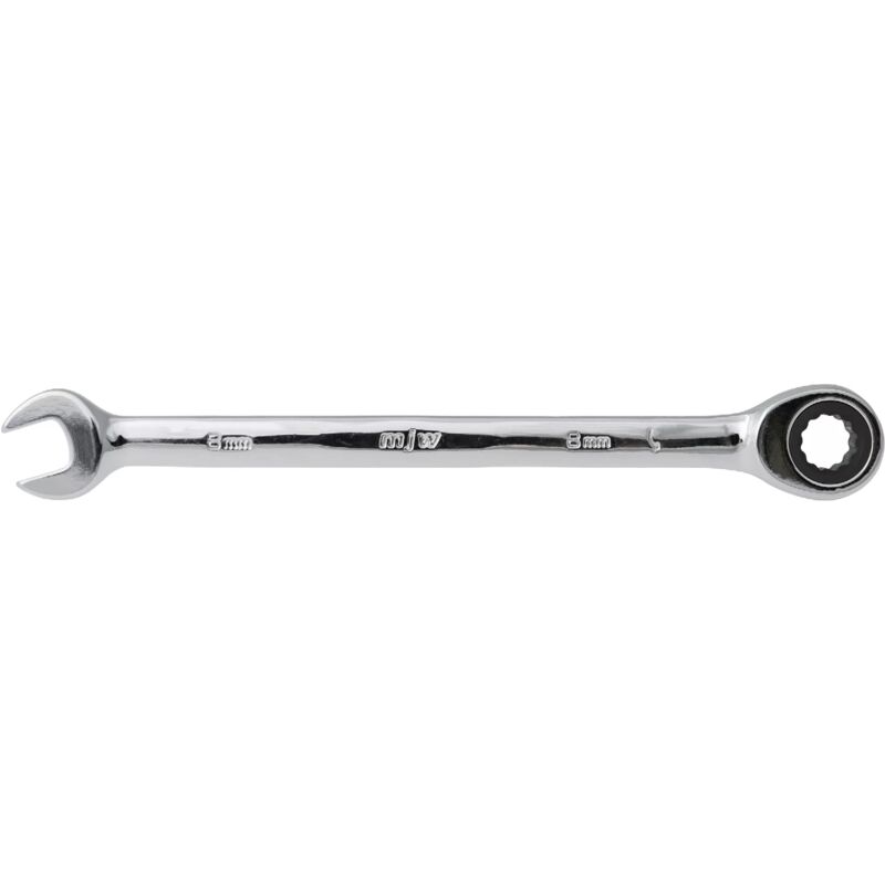 Una potente chiave a cricchetto facilita il lavoro in luoghi difficili da raggiungere. Un gran numero di nottolini consentono piccoli movimenti della chiave durante l'allentamento/serraggio, mentre i denti duri proteggono viti e dadi e riducono il rischio di scivolamento della chiave.