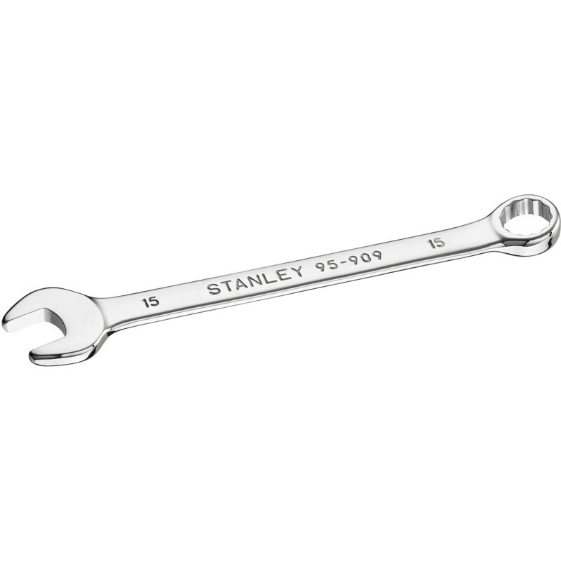 Chiave combinata prodotta dal brand Stanley. Forcella orientata a 15° - Occhio a 12 punte orientato a 15° per accesso laterale - Impugnatura ergonomica per un maggiore comfort e per consentire un serraggio più potente - Finitura cromata contro la corrosione - Acciaio forgiato a freddo