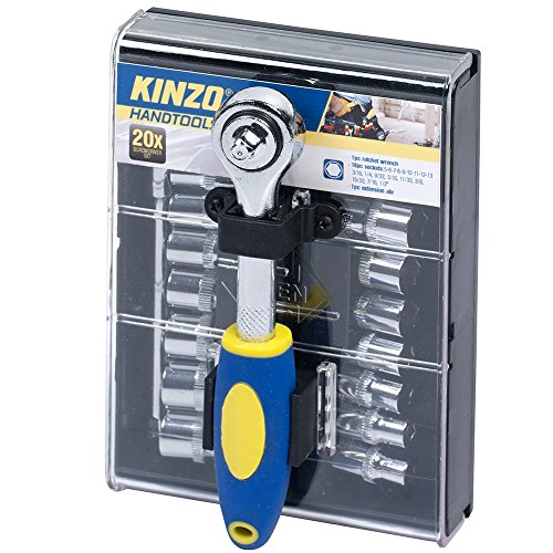 Chiave a cricchetto Kinzo con funzione avvita e svita con 18 inserti di varie misure e una prolunga.