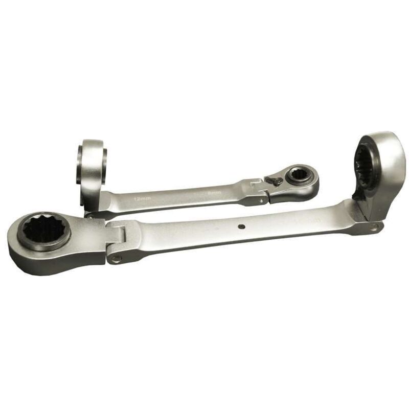Set 2 chiavi a cricchetto snodabili crv Masidef Set 2 chiavi a cricchetto snodabili ideali per lavorare in punti di difficile accesso Caratteristiche: 2 chiavi - 8 misure chiavi a cricchetto, a 72 denti, in acciaio cromo vanadio meccanismo a cricchetto avvita/svita 8 differenti misure: chiave piccola 8 - 10 - 12 - 13 mm chiave grande 16 - 17 - 18 - 19 mm testa snodata con blocco ogni 90°