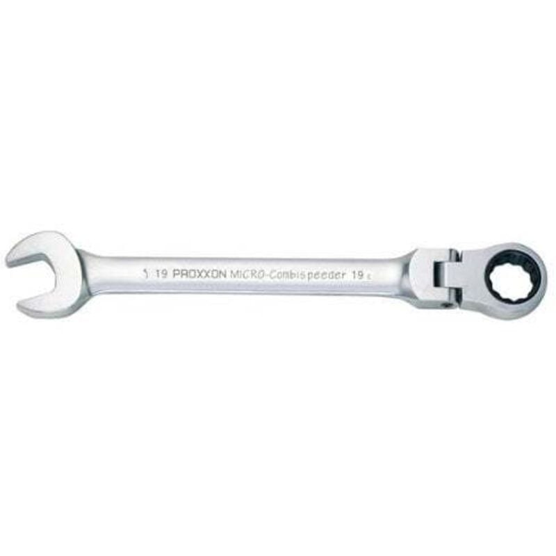Chiavi a cricco MicroSpeeder con snodo 13 mm PROXXON modello 23050 Chiave di manovra costituita da una chiave a forchetta da un lato e da una chiave a cricco con snodo dall'altro Si lavora senza risposizionare la chiave Esecuzione extra-lunga La frenatura dello snodo molto gradevole nell'uso rimane anche dopo oltre 10.000 utilizzi Insuperabile quando manca lo spazio e tocca trovare soluzioni alternative Un'anello interno a 72 denti in acciaio speciale bonificato consente l'uso della chiave con soli 5¬∞ di movimento I valori di coppia che si possono trasmettere superano di gran lunga le norme DIN/ISO Design extra-lungo by Proxxon Chiave in acciaio CrV Trattamento della superficie molto elaborato con ben leggibili marcature al laser delle dimensioni Dove le chiavi tradizionali non possono pi√π essere rigirate la funzione del cricco è l'unica soluzione "