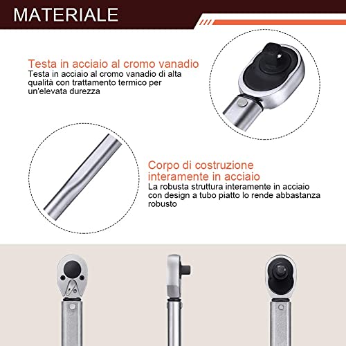USO CHIAVE DINAMOMETRICA:Ideale per il serraggio controllato durante il lavoro meccanico, riparazioni di autoveicoli e biciclette, sostituzione di ruote e manutenzione di autovetture, SUV, furgoni, e lavori di automobilistica.
