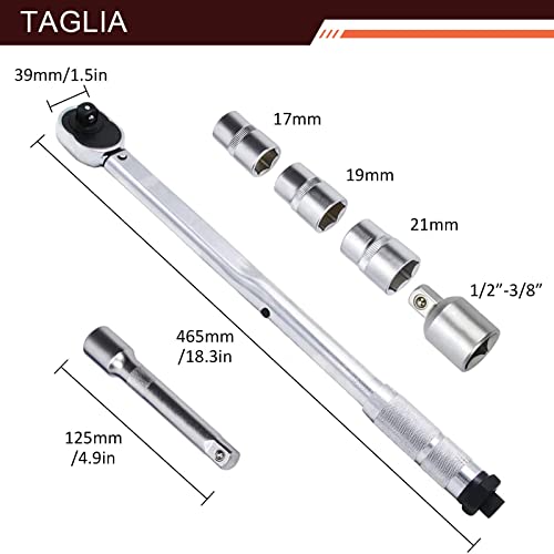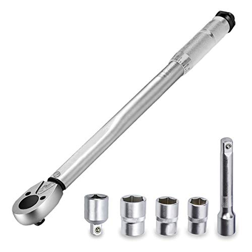 Chiave Dinamometrica, 1/2"(28-210 NM), 5" Barra di Prolunga e bussole da 17, 19, 21 mm, Riduttore da 1/2"a 3/8",Scatola,Riduttore e Scatola Portabile Per Auto Moto Bici Riparatori