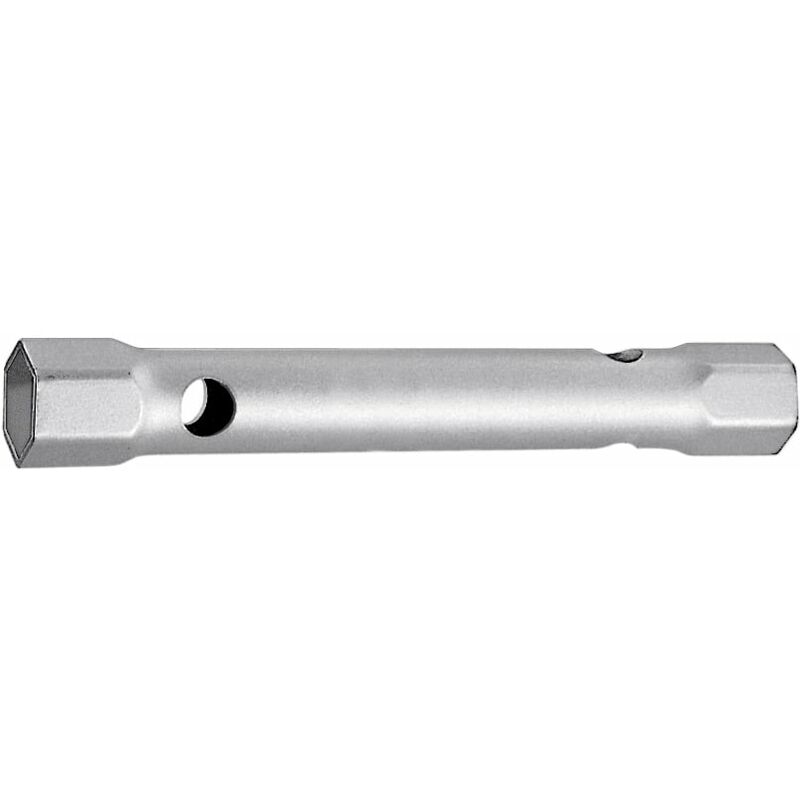 Tubo in acciaio da bonifica a parete sottile, con foro trasversale per la spina. Norma: DIN 896 B Materiale: Tubi d'acciaio per bonifica, al cromo. Dati tecnici Norma DIN 896 B Superficie es. cromata Materiale acciaio da bonifica, cromato Tipo di prodotto Chiave a bussola Lunghezza complessiva, mm 220 Apertura 1, mm 32 Apertura 2, mm 36 ⌀ Foro per spina di manovra, mm 18,5
