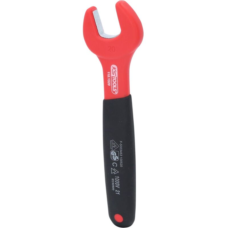 Chiave a forchetta isolata, 20 mm Larghezza tra le piastre in mm 20 Standard DIN 7446, IEC 60900 Peso del tessuto 196 Dimensioni dell'imballaggio 1 Isolamento Tauchisolierung nach DIN EN 60900 Materiale1 Feinster Chrom Vanadium Stahl