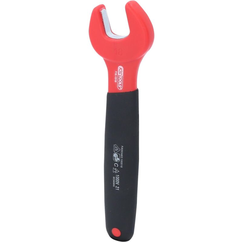 Chiave a forchetta isolata, 18 mm Larghezza tra le piastre in mm 18 Standard DIN 7446, IEC 60900 Peso del tessuto 149 Dimensioni dell'imballaggio 1 Isolamento Tauchisolierung nach DIN EN 60900 Materiale1 Feinster Chrom Vanadium Stahl