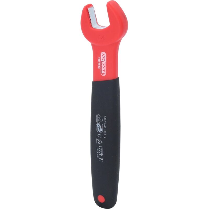 Chiave a forchetta isolata, 14 mm Larghezza tra le piastre in mm 14 Standard DIN 7446, IEC 60900 Peso del tessuto 88 Dimensioni dell'imballaggio 1 Isolamento Tauchisolierung nach DIN EN 60900 Materiale1 Feinster Chrom Vanadium Stahl
