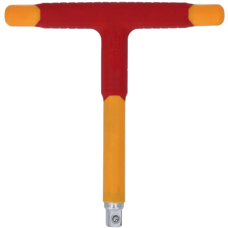 Quadro di manovra a norma DIN 3120 / 1174 con arresto a sfera A norma DIN 7436 Con rivestimento isolante a norma IEC 60900 Con bloccaggio a vite Cromo-vanadio Lunghezza impugnatura a T I 195.0 Azionamento quadro in pollici 1/2 Lunghezza totale L1 in mm 200.0 Standard DIN 7436, DIN 3120, ISO 1174, IEC 60900 Attributo di funzione 1 arretierbar Peso del tessuto 593 Certificato di prova 1000Volt GS Lunghezza parziale L2 in mm 15.0 Dimensioni dell'imballaggio 1 Impugnatura T-Griff Materiale1 Feinster Chrom Vanadium Stahl Isolamento Tauchisolierung nach DIN EN 60900