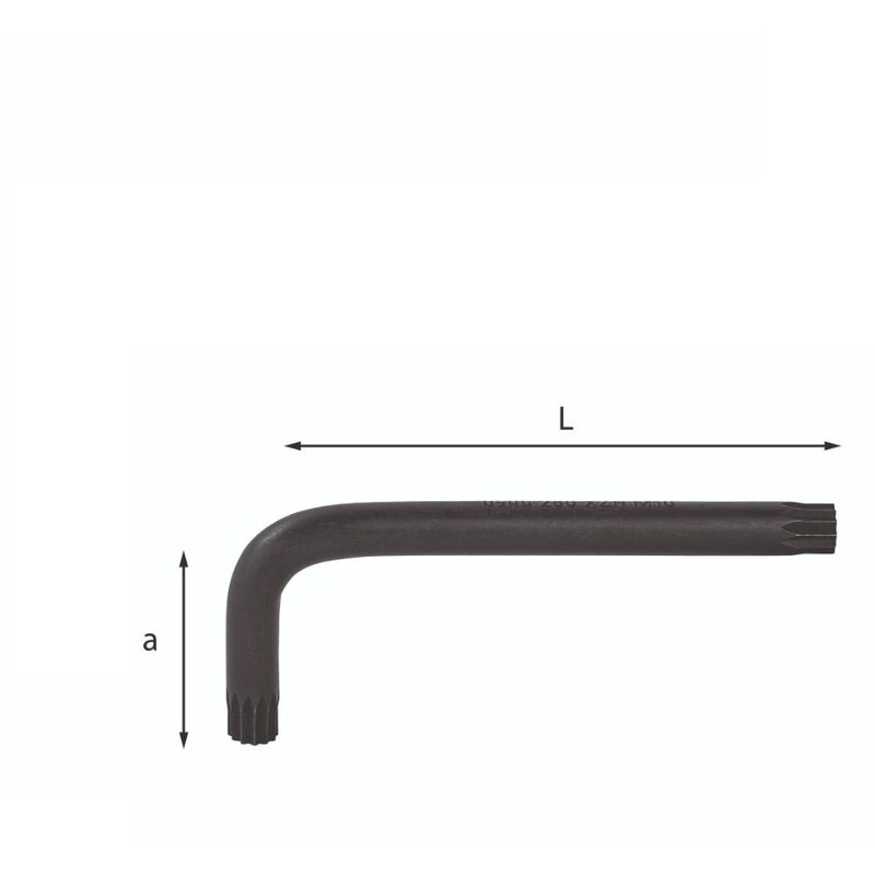 CHIAVI MASCHIO PIEGATE PER VITI CON IMPRONTA XZN 280 XZN Acciaio speciale altamente legato al Cromo Vanadio Esecuzione brunita CODICE Per viti M a mm L mm U02800541 5 25 72 U02800545 12 40 112