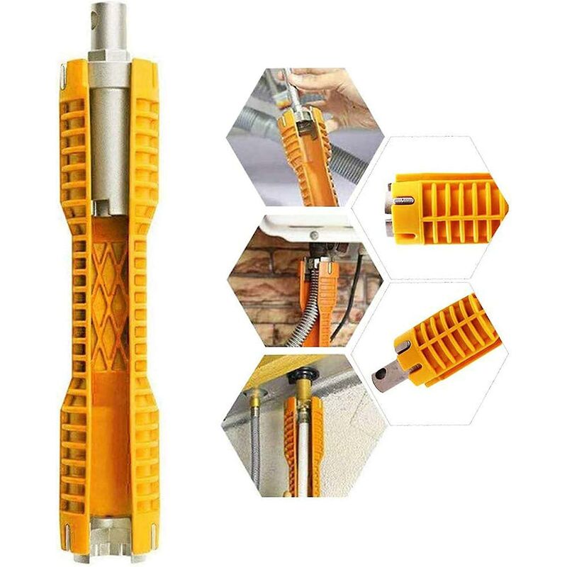 Adatto per dadi di alimentazione/valvole di intercettazione/cestelli del filtro/dado della linea di alimentazione/dadi del rubinetto - water/lavandino/bagno/impianto idraulico della cucina e altro 2. Basta scattare la posizione e ruotarla rapidamente, quindi sostituire il dado installato da il rubinetto. La chiave per rubinetti per installazioni di rubinetti comuni e filtri per lavello con un inserto unico 3. Una varietà di dadi di dimensioni comuni. Ideale per i più comuni dadi a 2, 3, 4 e 6 linguette 4. Il design extra lungo consente di ruotare i dadi di montaggio difficili da raggiungere su rubinetti, spruzzatori e valvole a sfera. 5. La chiave inglese è realizzata in plastica leggera e lega di alluminio. alluminio durevole e ad alta resistenza. Gli strumenti idraulici sono un gadget indispensabile per la tua cassetta degli attrezzi Questa chiave per rubinetto imposta e rimuove la bacinella di plastica e i dadi della linea di alimentazione, nonché i dadi esagonali da 7/8 pollici e