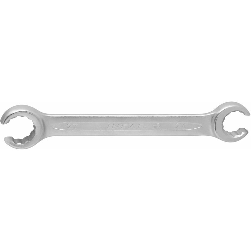 grande precisione dimensionale. Teste piegate a 10°. Codolo ovale, antiscivolo, molto stabile. Con anello esagonale fino alla misura 12×14 mm anello poligonale − a partire dalla misura 14×17 mm. Norma: DIN 3118 / ISO 3318 Materiale: Acciaio al cromo-vanadio, esecuzione cromata. Dati tecnici Norma DIN 3118 / ISO 3318 Materiale Acciaio al cromo-vanadio Superficie es. cromata Posizione anello Grad 10 Tipo di prodotto Chiave Apertura 1, mm 10 Apertura 2, mm 11 Lunghezza chiave L, mm 153 Dimensione apertura Metrica ⌀ Massimo anello D1 max, mm 19,4 ⌀ Massimo anello D2 max, mm 21,4 Altezza massima anello h1 max, mm 8 Altezza massima anello h2 max, mm 8,5