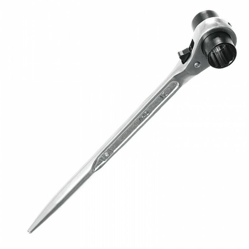 Chiavi a cricchetto mass per ponteggi Chiave a cricchetto per ponteggi, corpo in acciaio cromo vanadio temperato, bussola 21×22 reversibile, lunghezza 35 cm. Studiate per invertire il senso di serraggio in un unico gesto veloce e semplice grazie all asta di manovra con meccanismo a cricchetto reversibile, permette di serrare se ruotata in un senso e di girare libera se ruotata nel senso opposto. Il verso di serraggio è selezionabile con una levetta oppure capovolgendo l attacco quadro, Impugnatura di forma ergonomia.