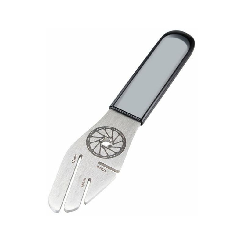 Chiave a toppa per freno a disco per bicicletta: la chiave a toppa per freno a disco è realizzata in acciaio inossidabile durevole, resistente e resistente alla corrosione. La superficie dell'impugnatura è liscia e l'impugnatura è comoda. Può aiutarti a risolvere i guasti del rotore del freno a disco come lo sfregamento del disco. Tre dimensioni di profondità della scanalatura: il nostro ravvivatore per freni a disco per bicicletta ha 3 diverse profondità della scanalatura (15 mm / 18 mm / 42 mm), che possono essere utilizzate per regolare il freno a disco con diverse angolazioni per garantire che il lavoro venga svolto in modo efficiente e professionale. Il segno della taglia sulla chiave adotta il laser laser, che non è facile da indossare e ha un alto grado di riconoscimento. (Larghezza della fessura di circa 2,5 mm) Dimensioni adatte: la forcella del rivestimento del freno a disco è lunga circa 7,3 pollici (185 mm), larga 1,5 pollici (38 mm) e spessa 0,16 pollici (4 mm). La